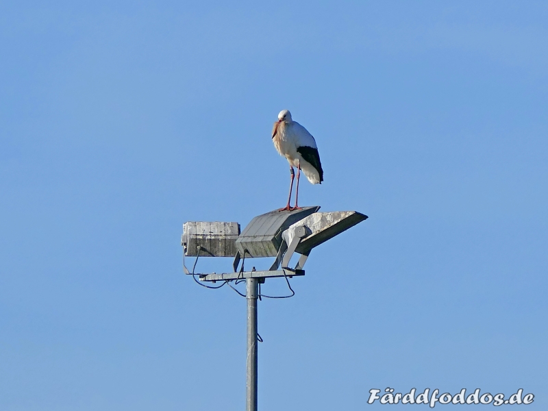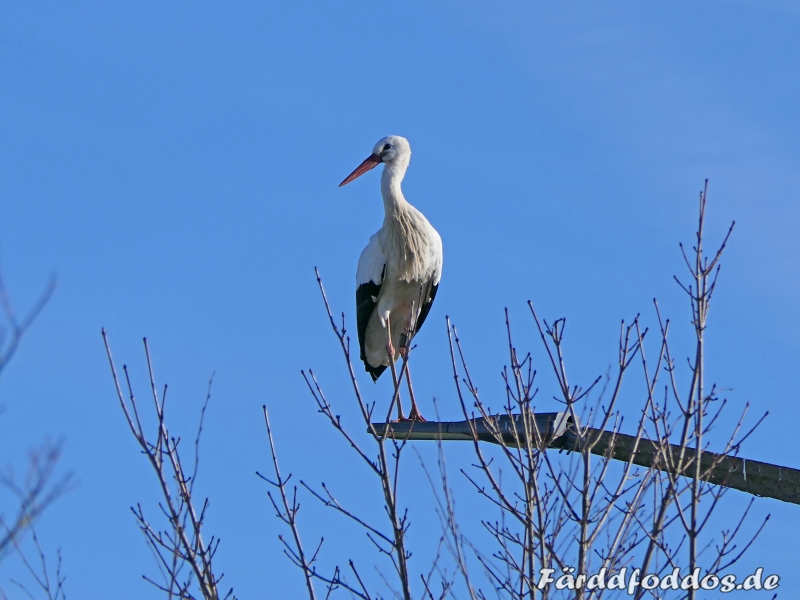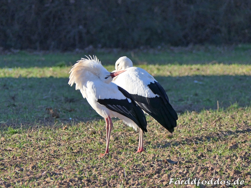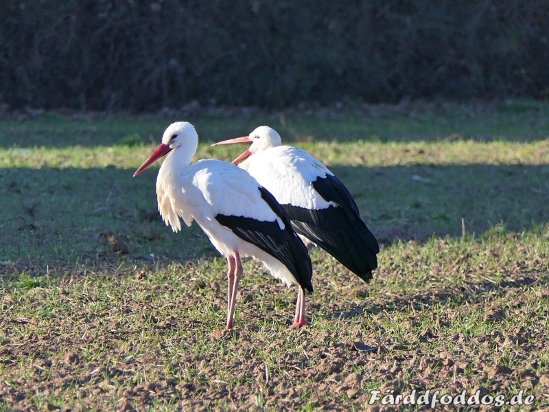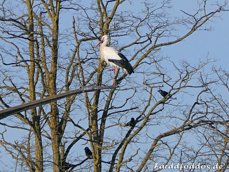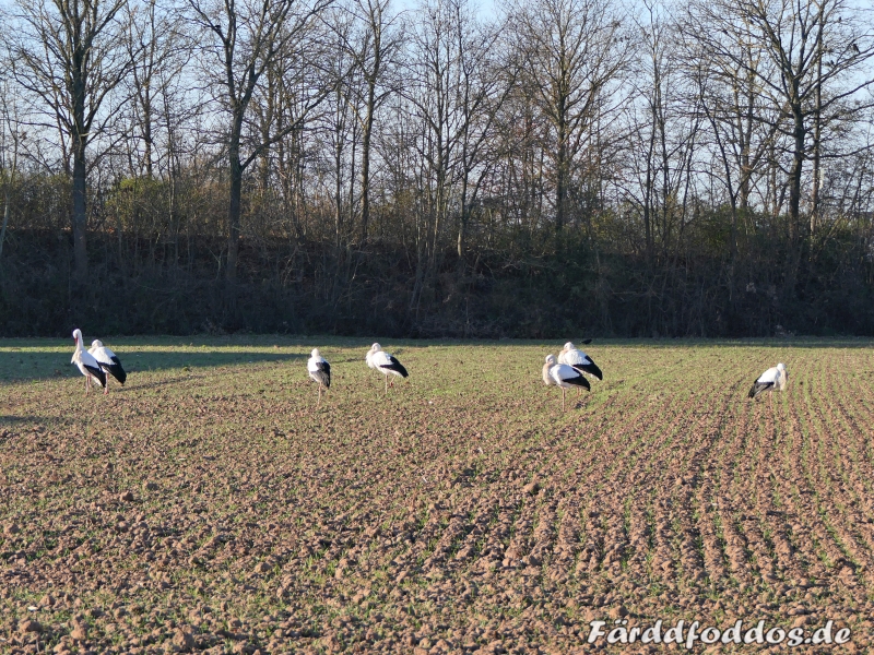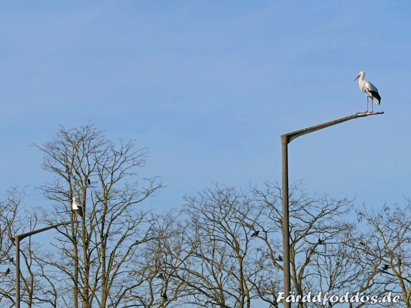 Auch im Winter sind sie da: Die Fürther Störche heute Vormittag gegenüber der Kompostanlage in Burgfarrnbach.