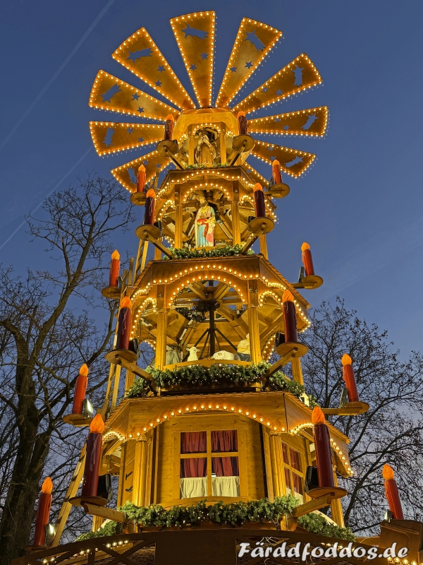 Die Weihnachtspyramide nebenan in der Adenaueranlage lädt weiterhin bis zum 10. Januar zum Verweilen ein.