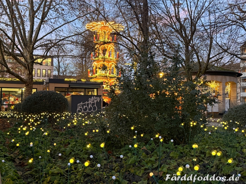 Die Adenaueranlage im diesjährigen Weihnachtsglanz. Und auch an die Beete wurde gedacht.
